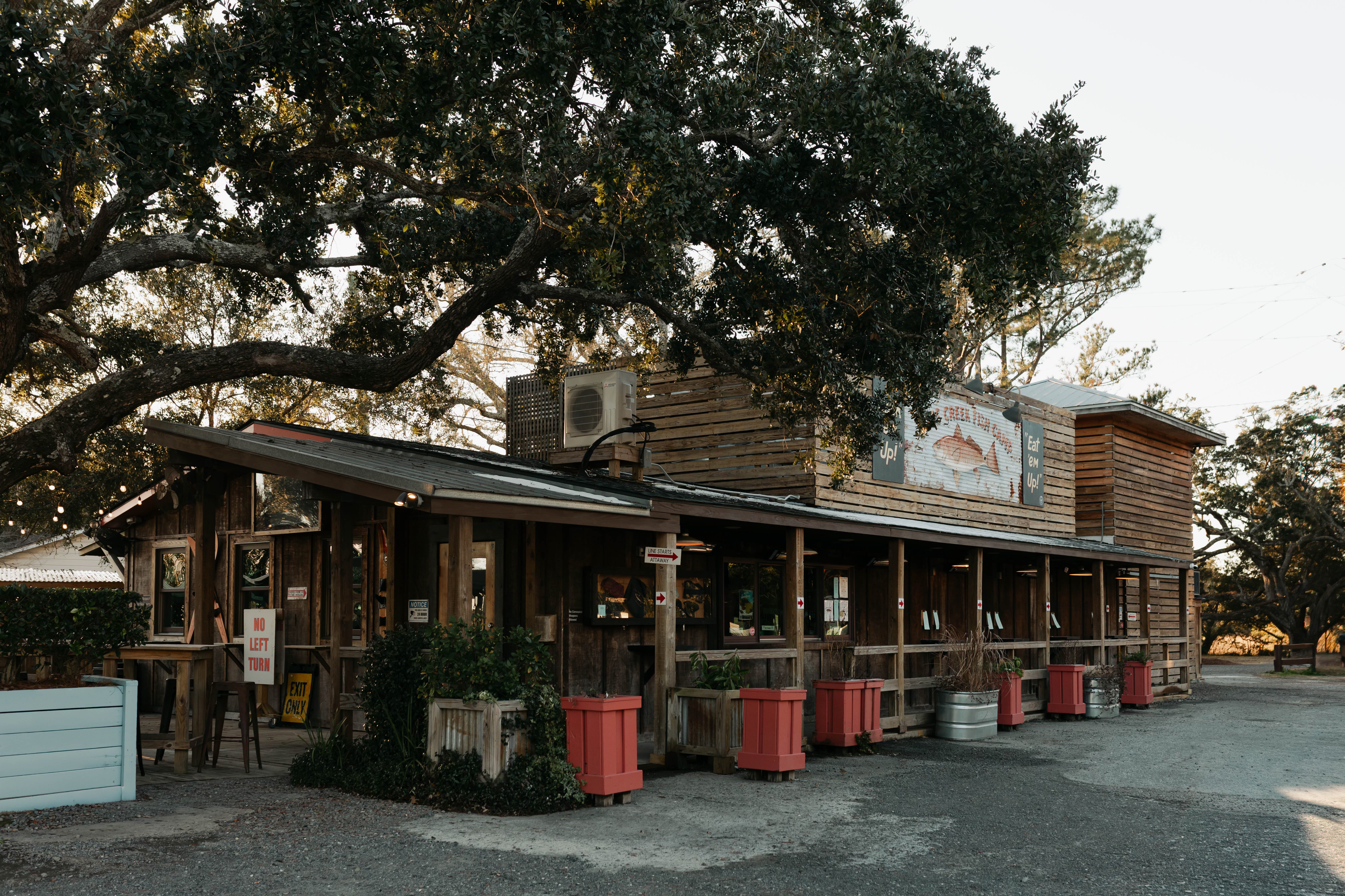 Starting north, T.W. Graham & Co. is nestled in the quaint coastal village of McClellanville. I always notice the oak trees first — a peaceful welcome before you pull in. A weathered sign over the door reads, eat local shrimp here, and they mean it. McClellanville’s shrimp docks — home to Carolina Seafood and Livingston’s Bulls Bay Seafood, collectively supply much of Charleston County’s shrimp. It goes without saying: order the friend shrimp. And don’t leave without a slice of key lime pie for the road.