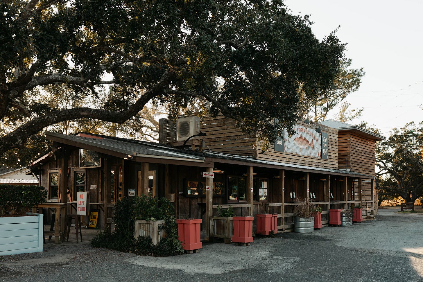 Heading south towards the peninsula, the drive carries you through the Francis Marion Forest, past long stretches of pine and sweetgrass basket stands, before delivering you to Awendaw. Here, SEWE Outpost stands as a gateway to the wild coastal south – an iconic stop and keeper of tradition. From crab traps to homemade country ham biscuits, it transcends its appearance as a gas station the moment you walk through the doors. Grab a MoonPie moon pie and an Arnold Palmer, and don’t miss the hot biscuit or fried chicken sandwich from the back. If there’s one stop you make on this list, make it this one.